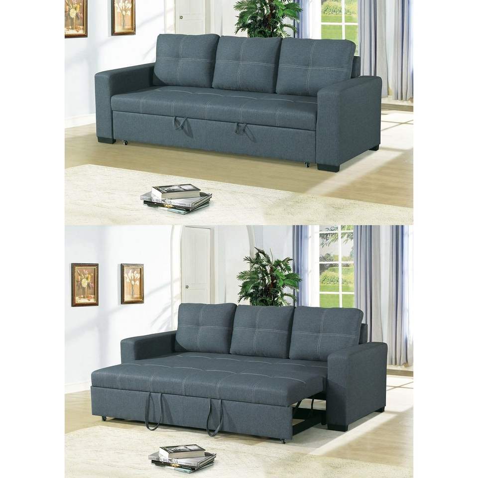 Sofá Convertible Azul Gris Polifibra con Cama Extraíble HS00 F6532