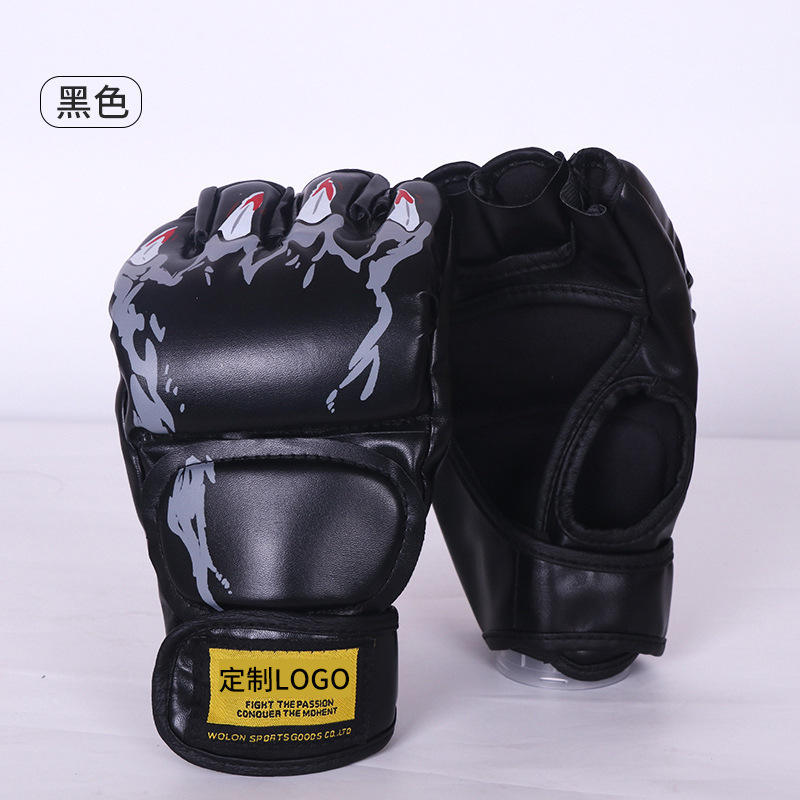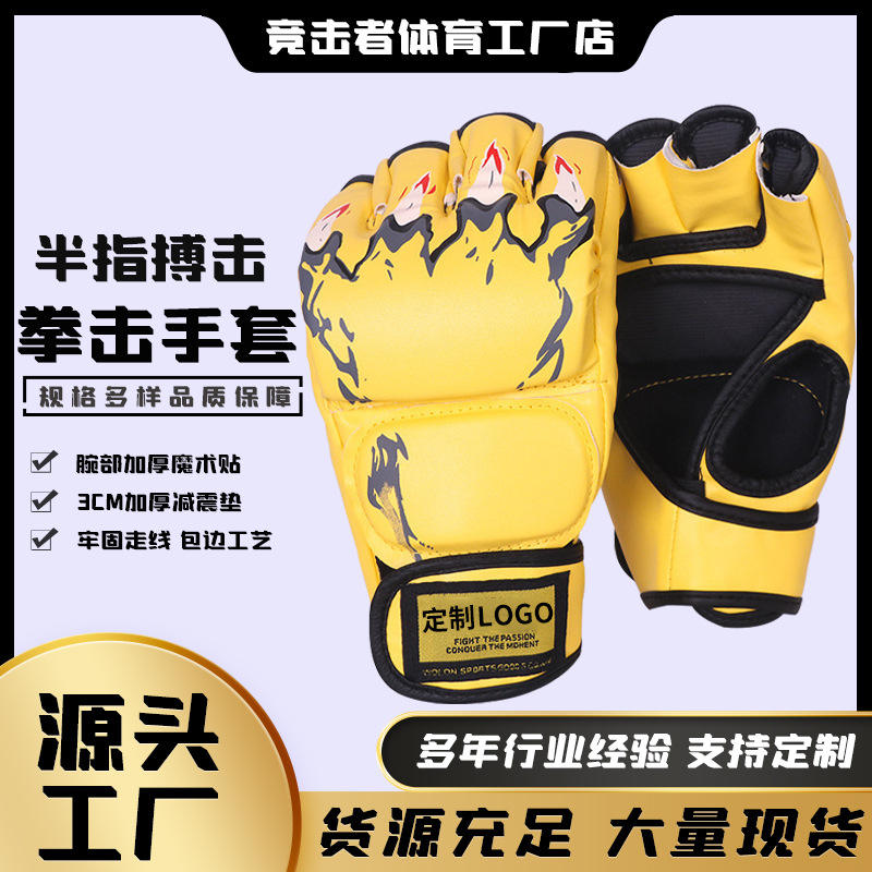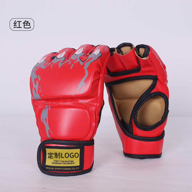 Guantes de Boxeo Azules de Medio Dedo con Cierre de Velcro para Entrenamiento de MMA y Práctica de Taekwondo para Adultos