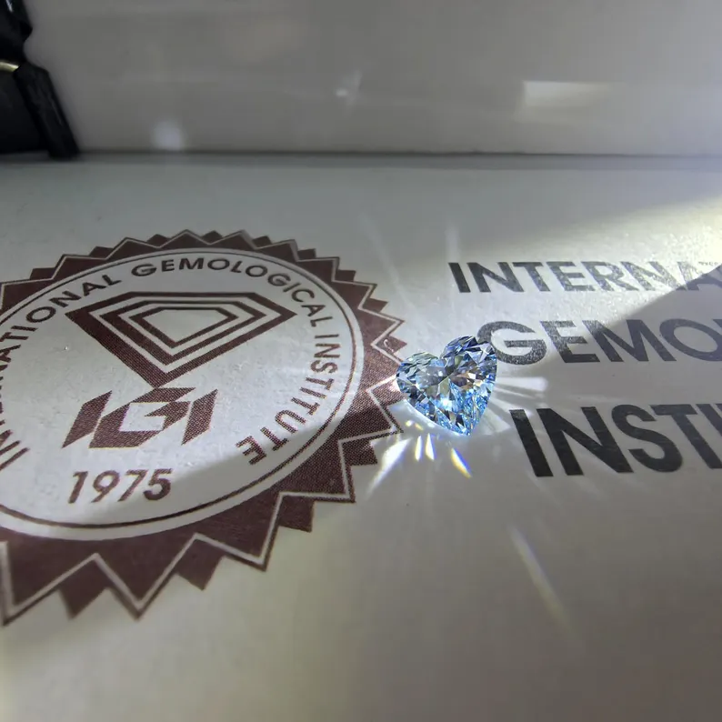 Diamante Suelto Azul Corte Corazón, Cultivado en Laboratorio, Color Fantasía VVS, Certificado IGI para Joyería Personalizada