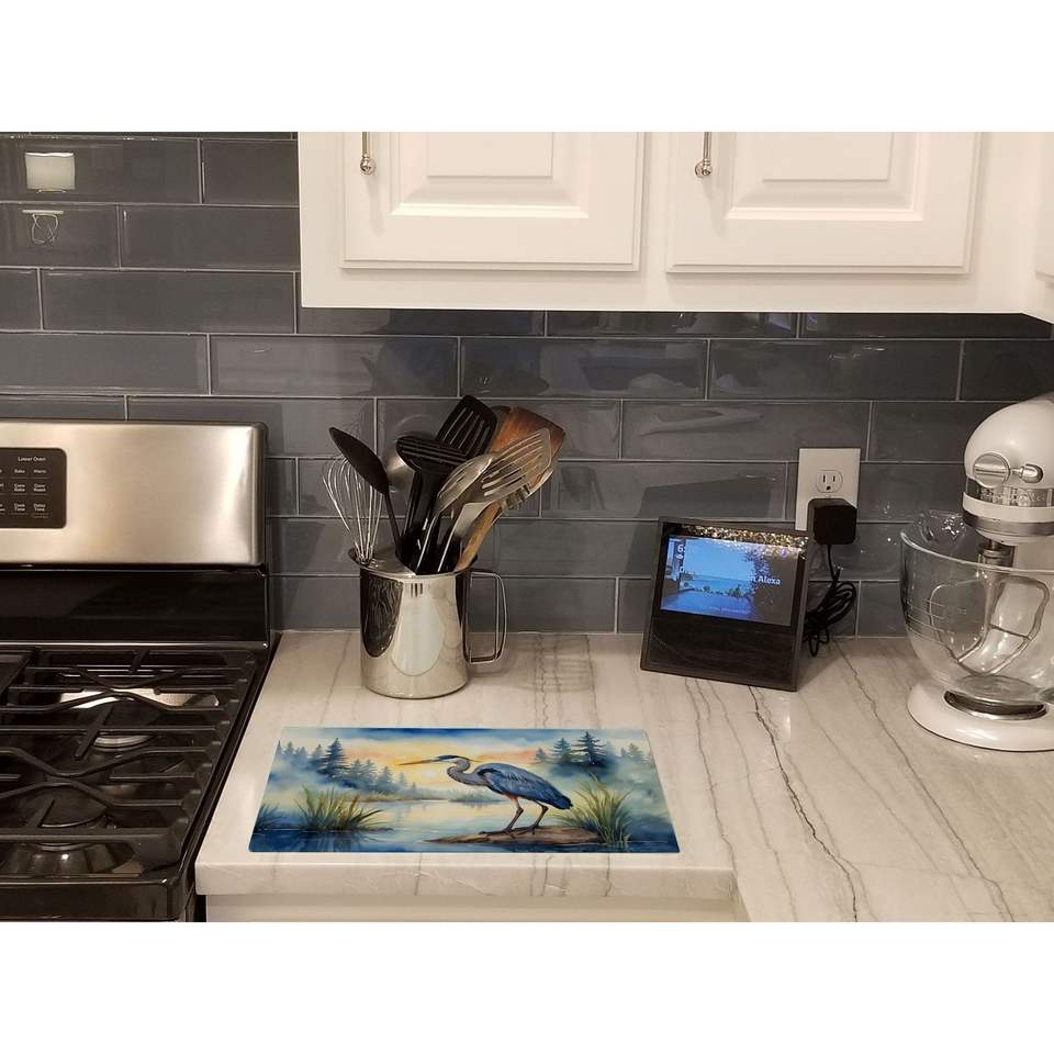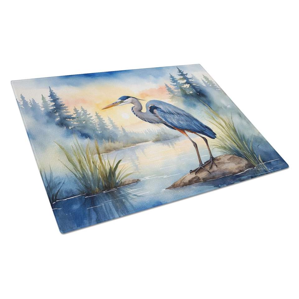 Blue Heron on Tabla de cortar de vidrio templado Tabla de servir de cocina de gran tamaño Placa decorativa para picar y servir