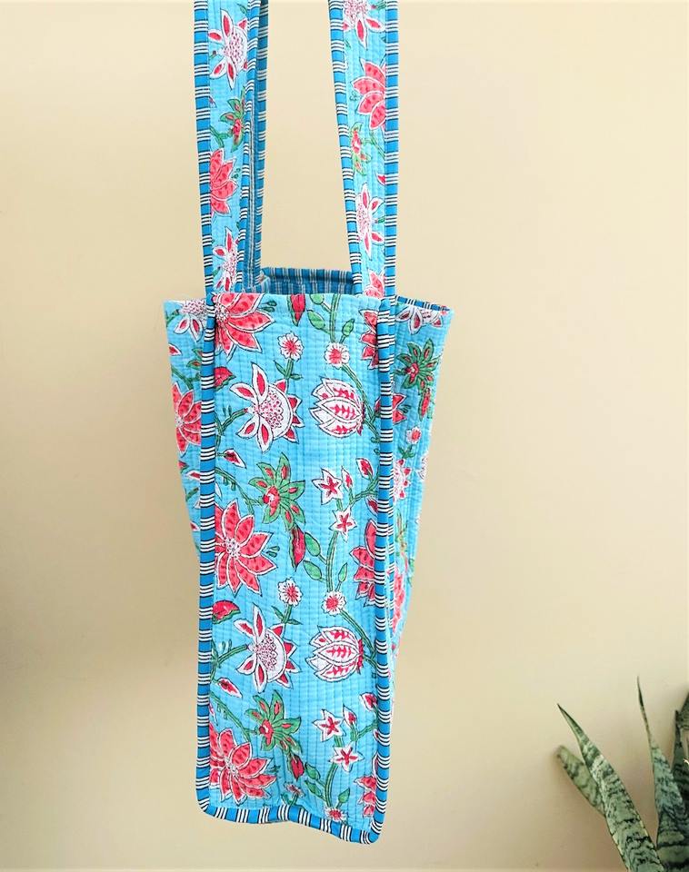Bolso Tote Acolchado Hecho a Mano con Estampado JaipurblockPrintArt Azul Indio, Bolso de Hombro Ecológico con Cierre de Cremallera, Sostenible