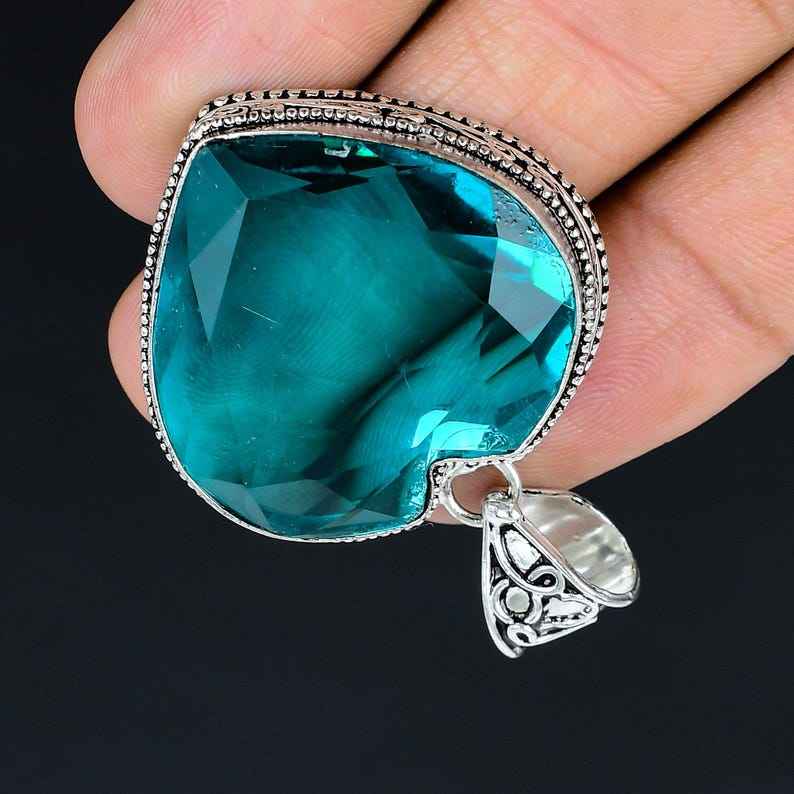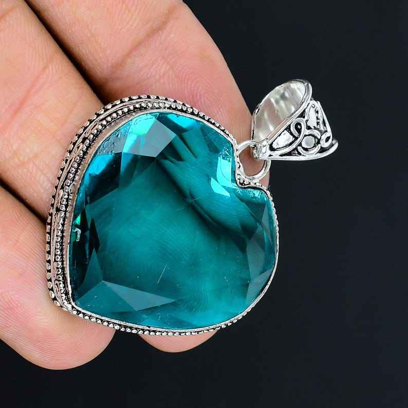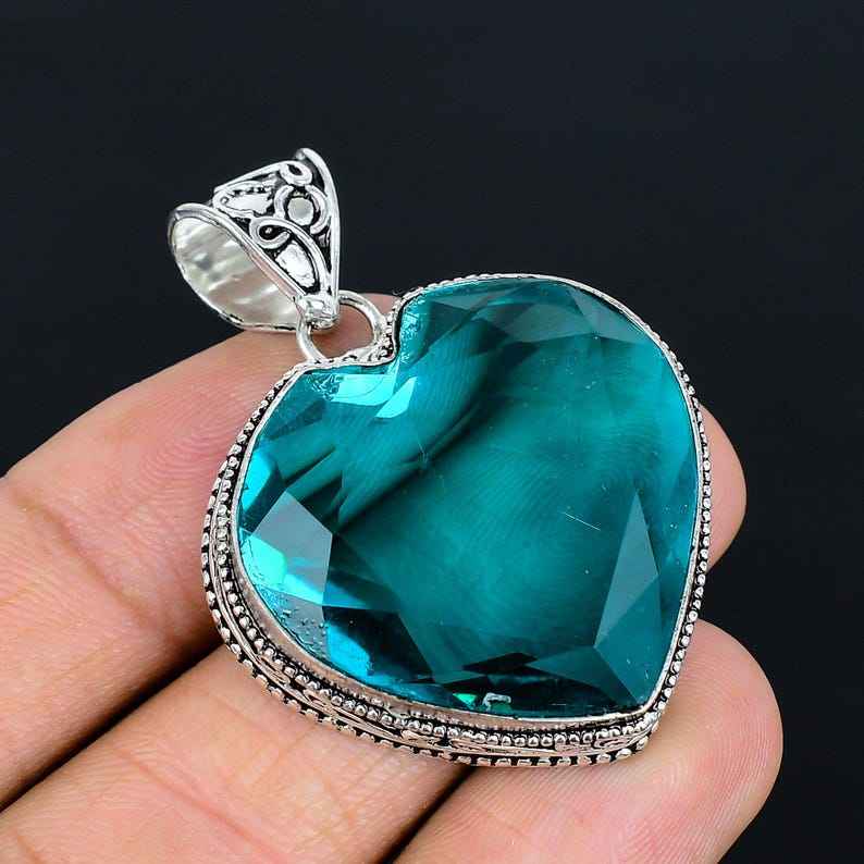Nombre o palabras:Heart Shape Gemstone Pendant, Topaz Pendant, Vintage Style Jewelry, Silver Pendant