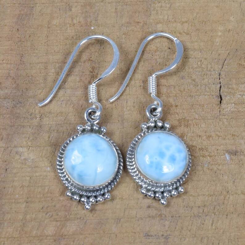 Nombre del producto:Pendientes de botón de Larimar azul
