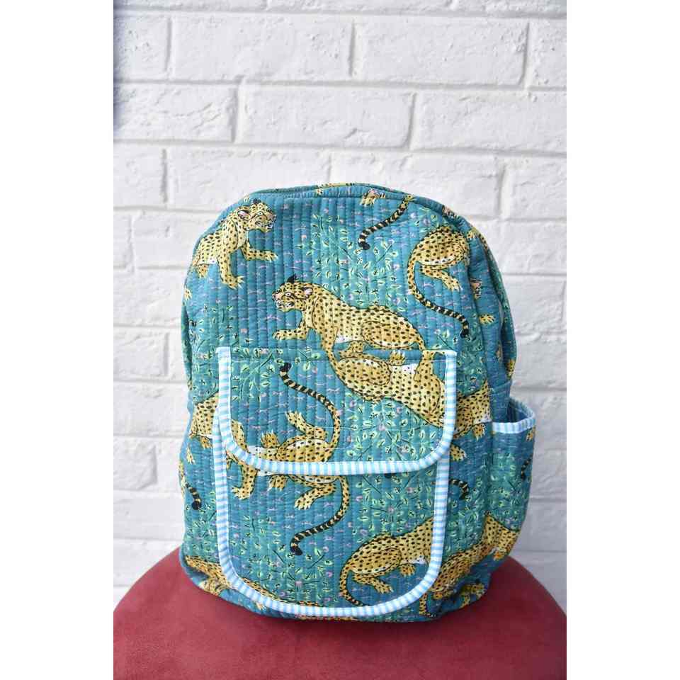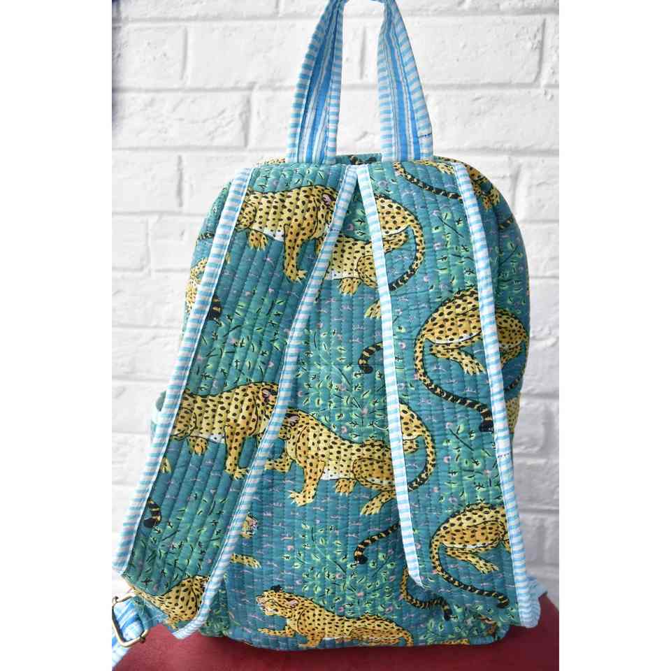 Mochila con Estampado de Leopardo Azul, Desmontable, Espaciosa, Elegante, de Algodón Hecho a Mano, Antirrobo, Impermeable, con Cierre USB, a Rayas, Moderna