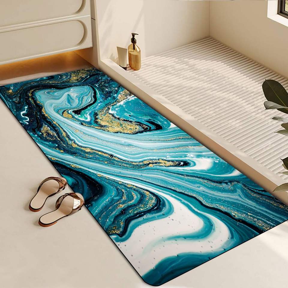 Alfombra de baño de mármol azul de 17, 5X42 pulgadas antideslizante para interiores y exteriores, decoración del hogar, alfombrilla de barro para baño hecha de poliéster duradero