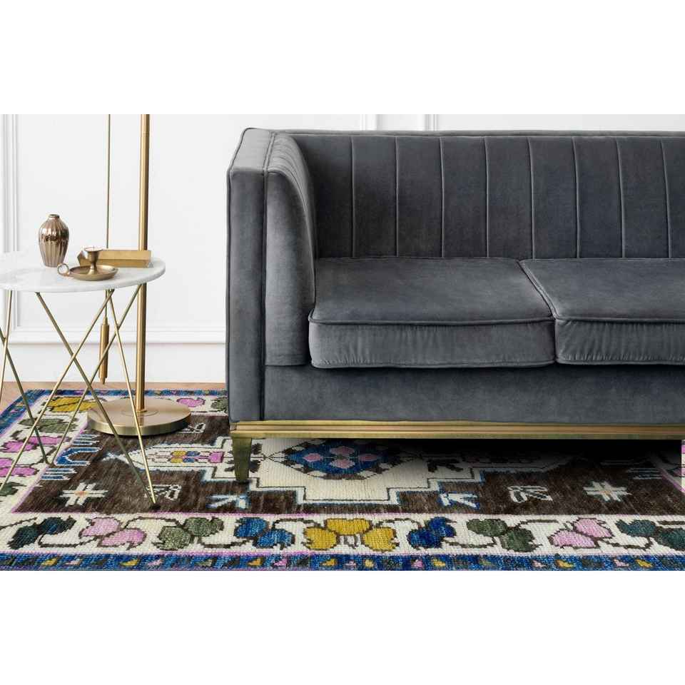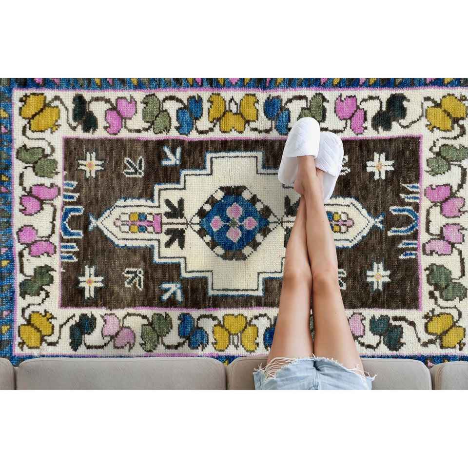 Alfombra Turca con Medallón Azul: Patrón Étnico, Alfombra Impresa Lavable a Máquina, Alfombra de Chenilla