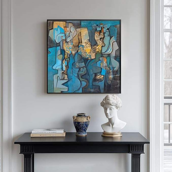 Pintura Abstracta Moderna Azul, Cuadro Grande en Lienzo para Paredes, Minimalista para Sala de Estar, Pasillo, Dormitorio, Oficina, Baño