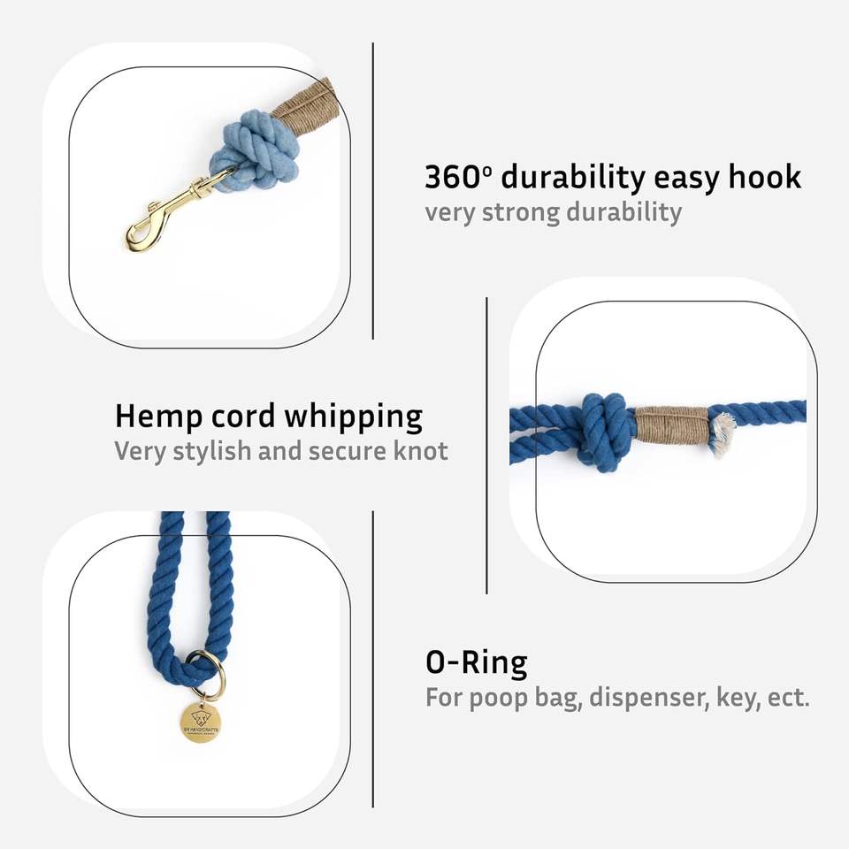 Correa para Perro de Cuerda de Algodón Hecha a Mano con Diseño Ombre Azul, Correa Trenzada Mediana para Pasear y Entrenar Mascotas con Patrón Sólido
