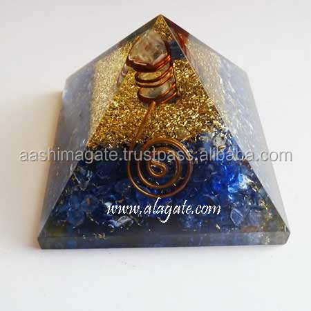 Pirámide de orgón de ónix azul hecha a mano con piedra semipreciosa de punto de cristal para curar a la venta