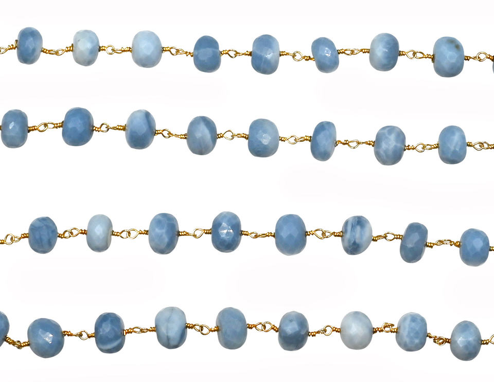 Product Name::Blue Opal Brass Gold Plated Rosary Wire Wrapped Chain