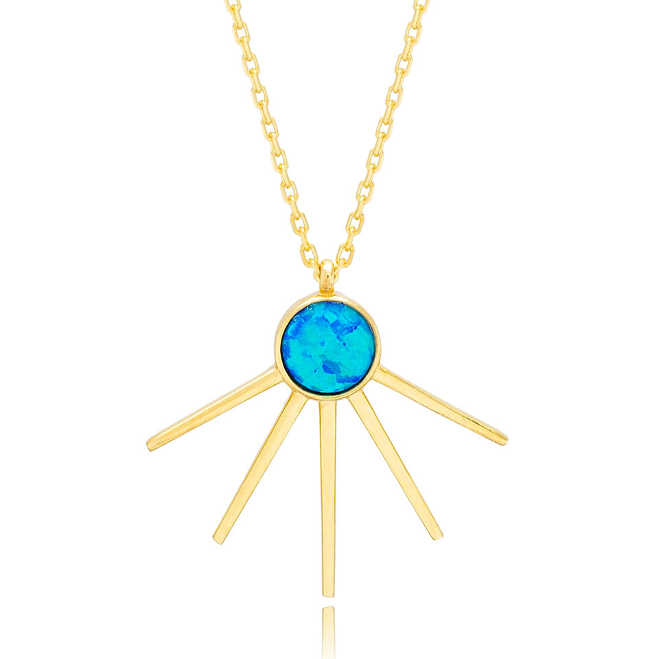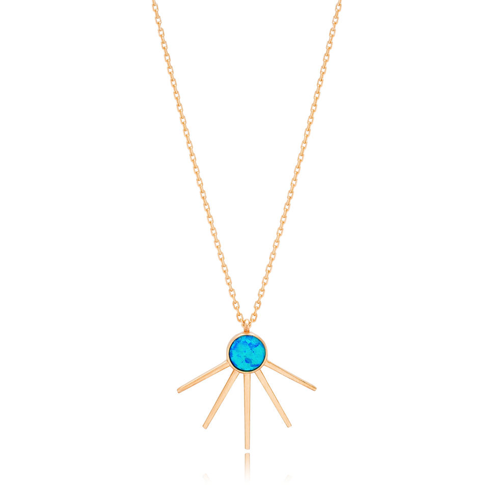 Collar con colgante de ópalo azul, joyería de plata de ley, diseño único y delicado