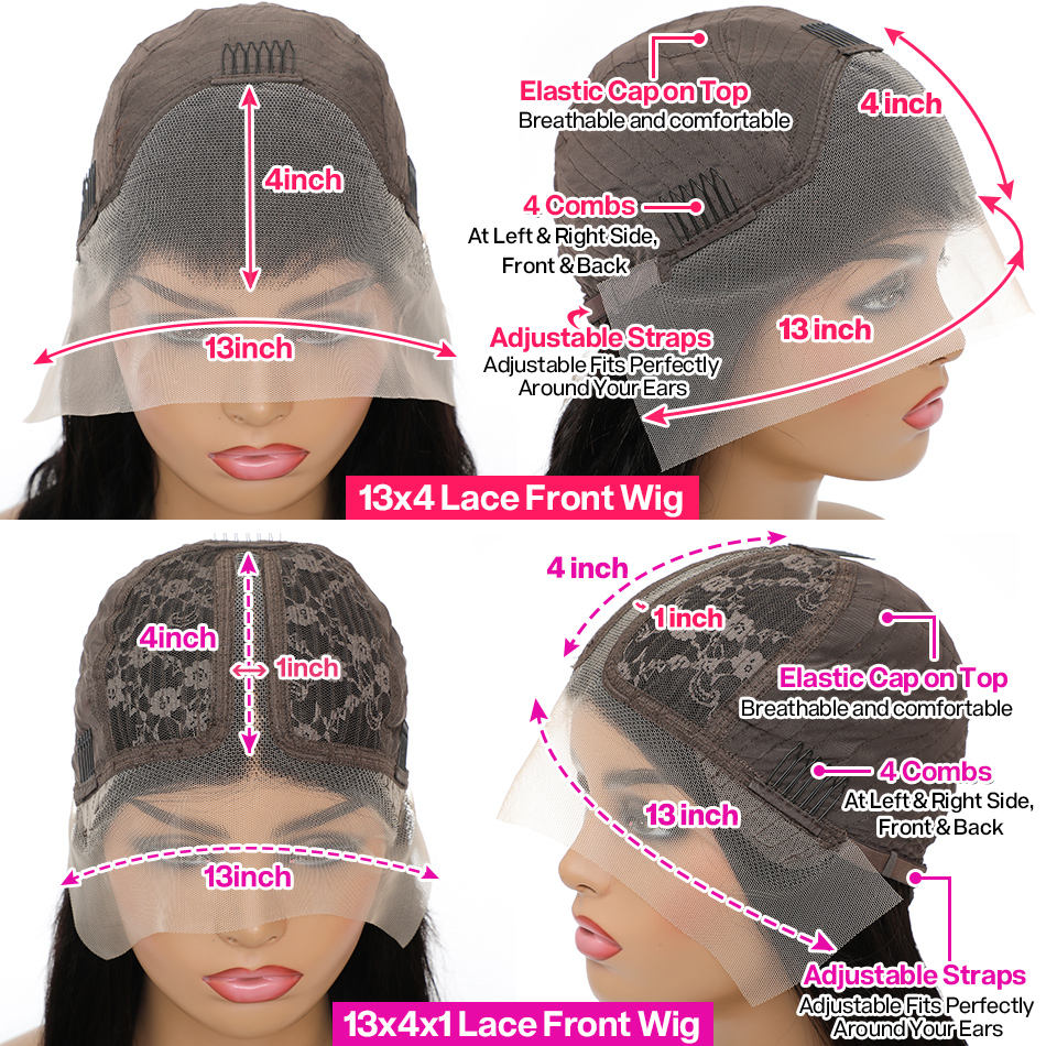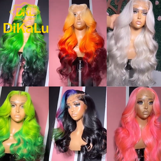 Peluca de Cabello Humano Virgen Remy con Reflejos Azul y Rosa para Mujer, con Frente de Encaje Transparente, 30 Pulgadas, Ondulado, Corto