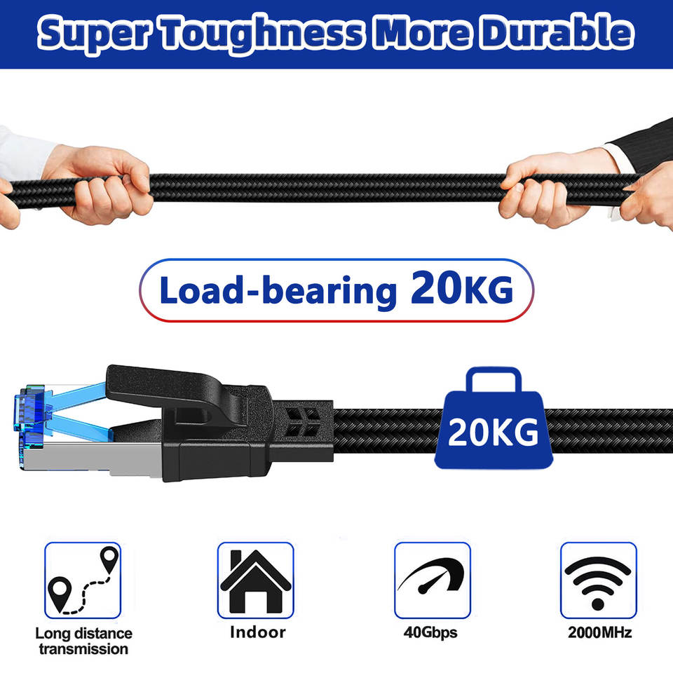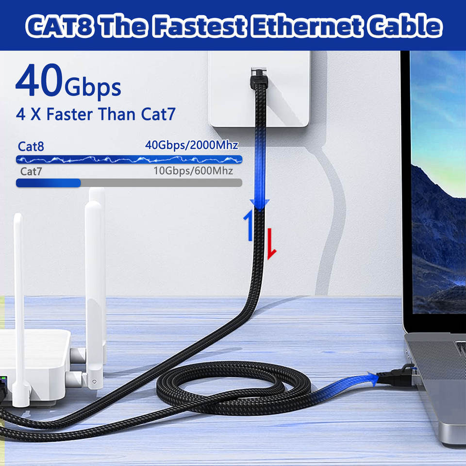 Cable RJ45 CAT8 SFTP de 30AWG con Conector Plateado Azul, Cubierta de PVC, 5m, Cable de Red Ethernet CAT 8, Fibra Trenzada