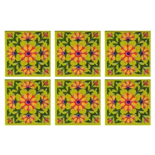 Paquete de 6 azulejos de cerámica con estampado de cerámica azul de 4x4 pulgadas para decoración del hogar