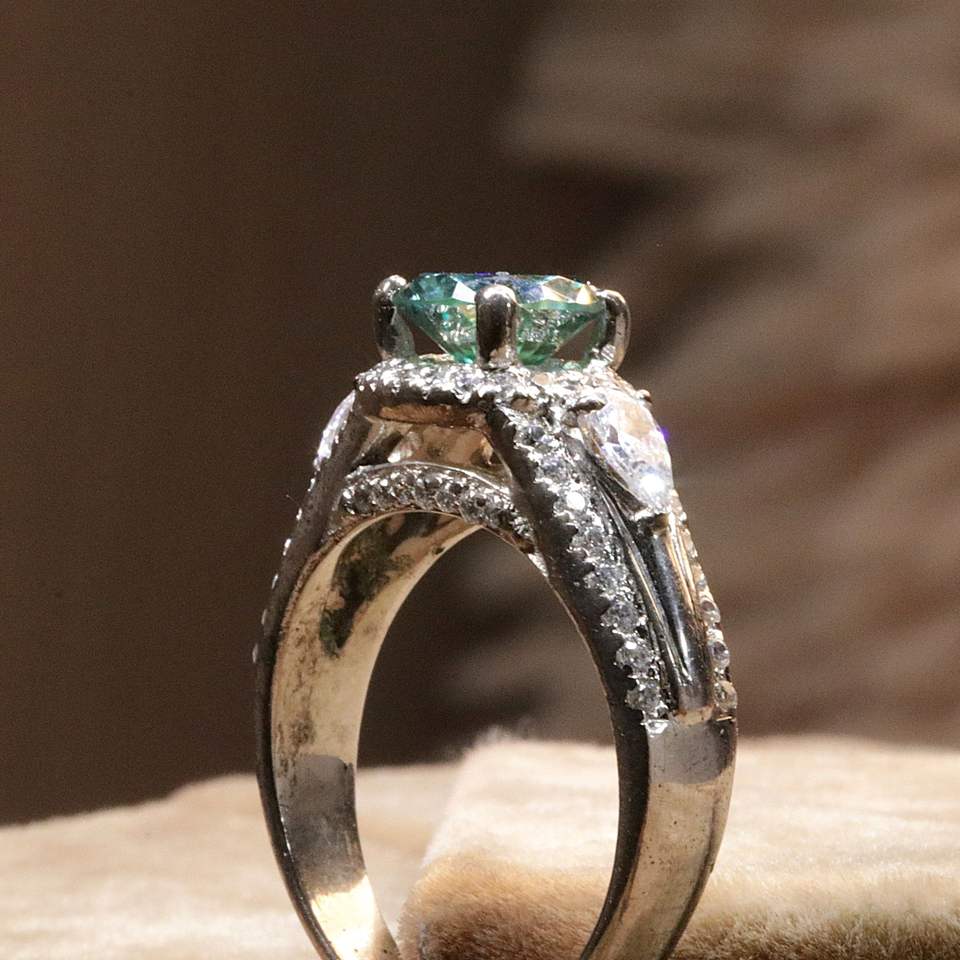 Anillo de compromiso de estilo único de corte redondo y pera azul para mujer