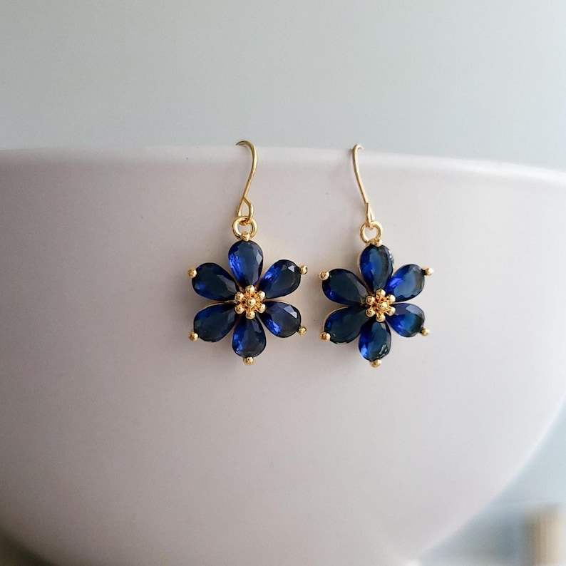 Palabra clave:Pendientes de botón minimalistas y naturales con lazo y zafiro azul. Piedra de zafiro azul.