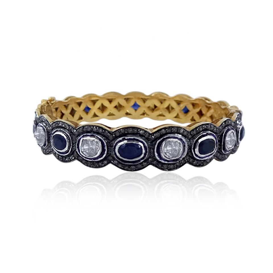 Pulsera de oro de 14k con diamantes de Polki y piedras preciosas de zafiro azul, joyería de plata de moda