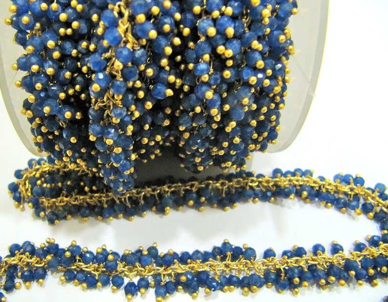 Venta al por mayor Azul zafiro Rondelle facetado racimo uva Rosario cadena colgante con cuentas chapado en oro envoltura de alambre vendido por pie