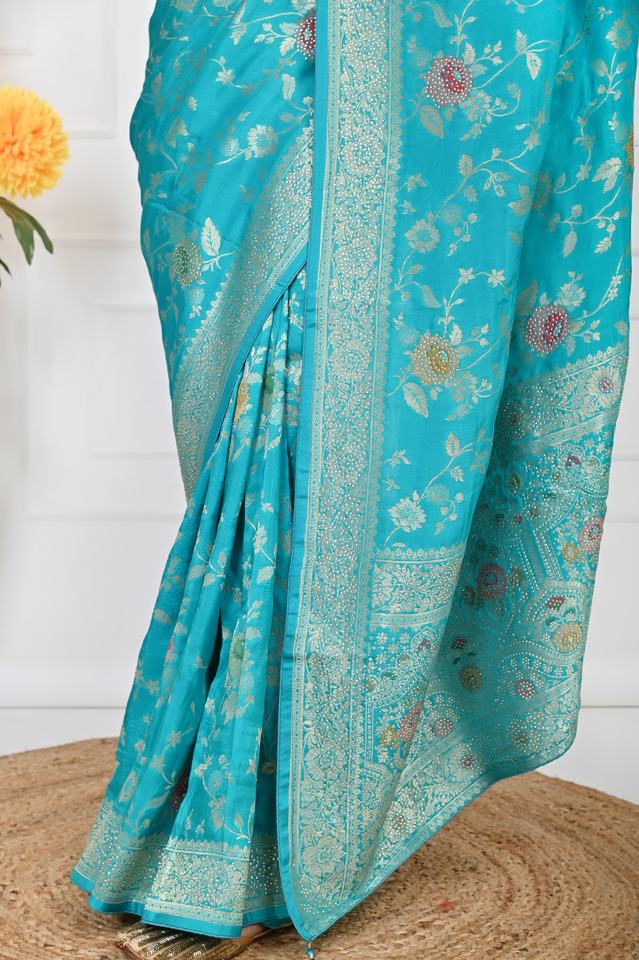 Blue Saree Best High Quality Collection H o seda trabajo hecho a mano cutwork borde contraste blusa trabajo hecho a mano mujeres precio al por mayor