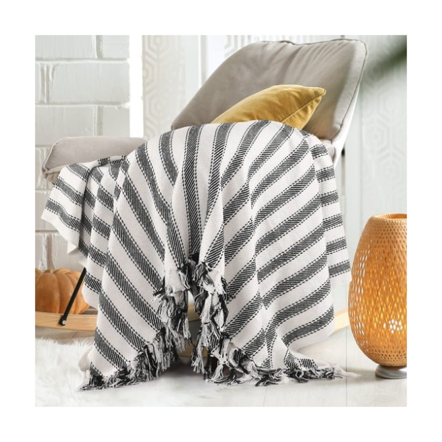 Manta de Sofá Azul Suave de Acrílico Slub de 50x60 Pulgadas, Certificada por GOTS India, Perfecta para Minoristas que Buscan una Textura Natural Suave y Decoración Moderna