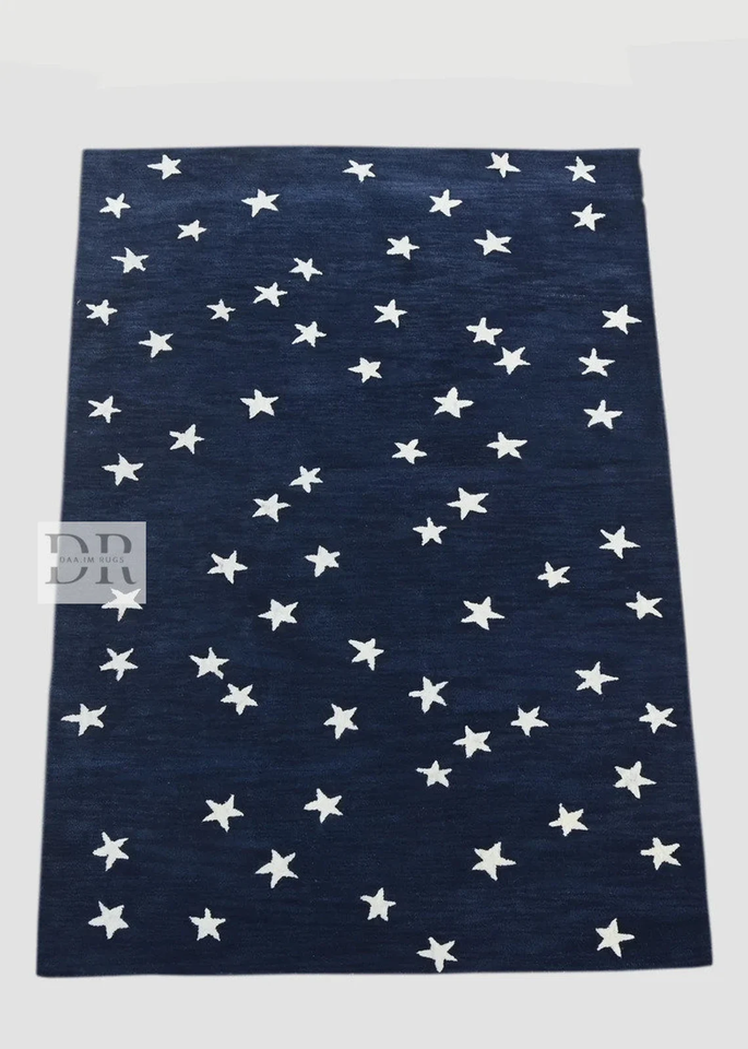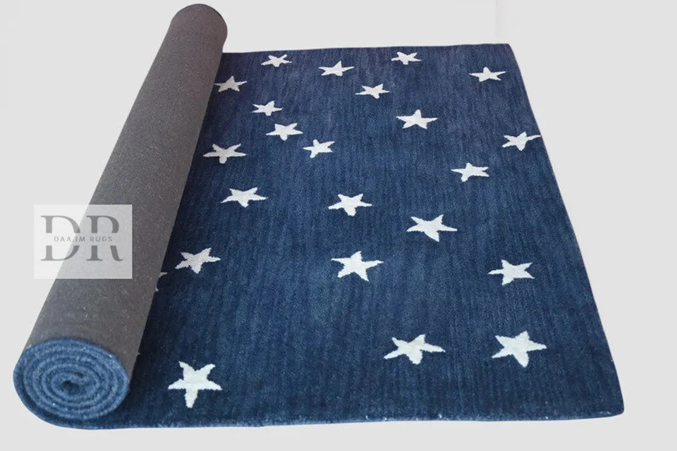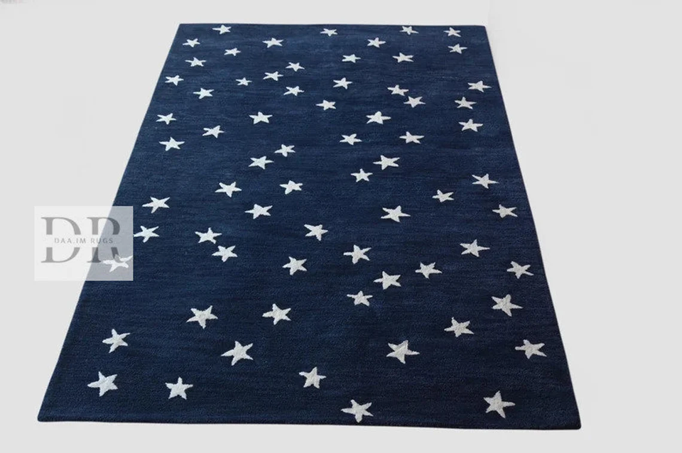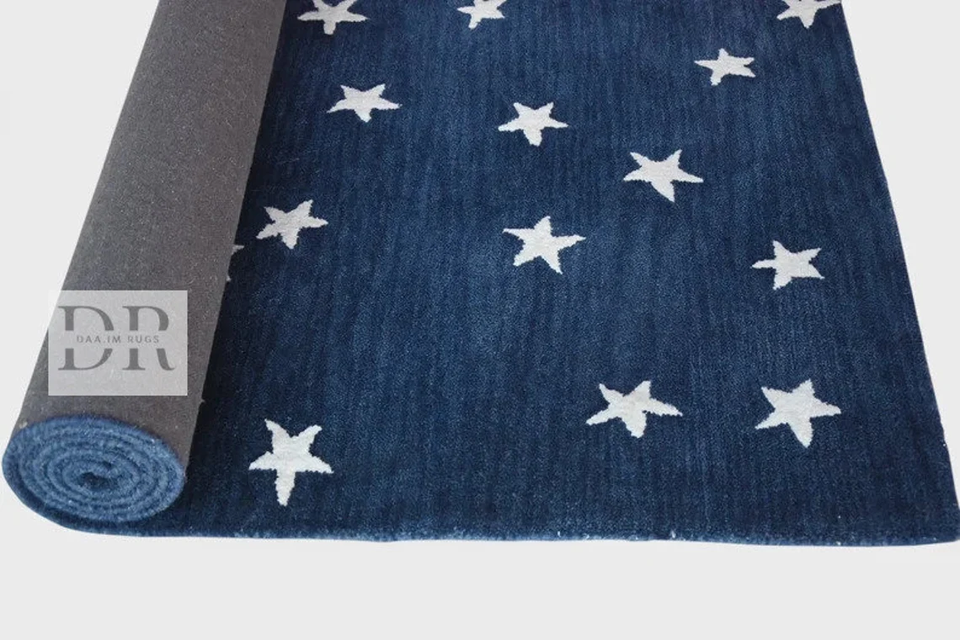 Alfombra hecha a mano con diseño de estrellas azules, Alfombra de lana, alfombra de área de alta calidad para comedor, salón, cocina