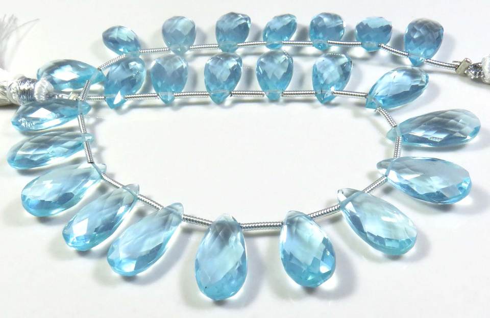 Cuentas de Cuarzo Sintético Azul Hidro, 24 Piezas, 15x7mm, Corte Pera, Facetado, Alta Calidad, Transparente