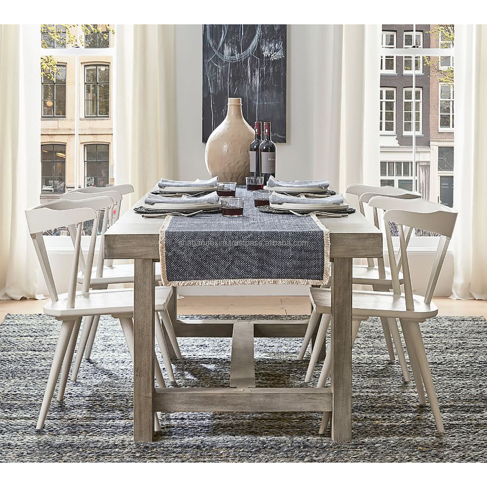 Camino de mesa azul con flecos, tejido a mano, de algodón, exclusivo para el hogar, decoración para fiesta de boda, corredor de mesa