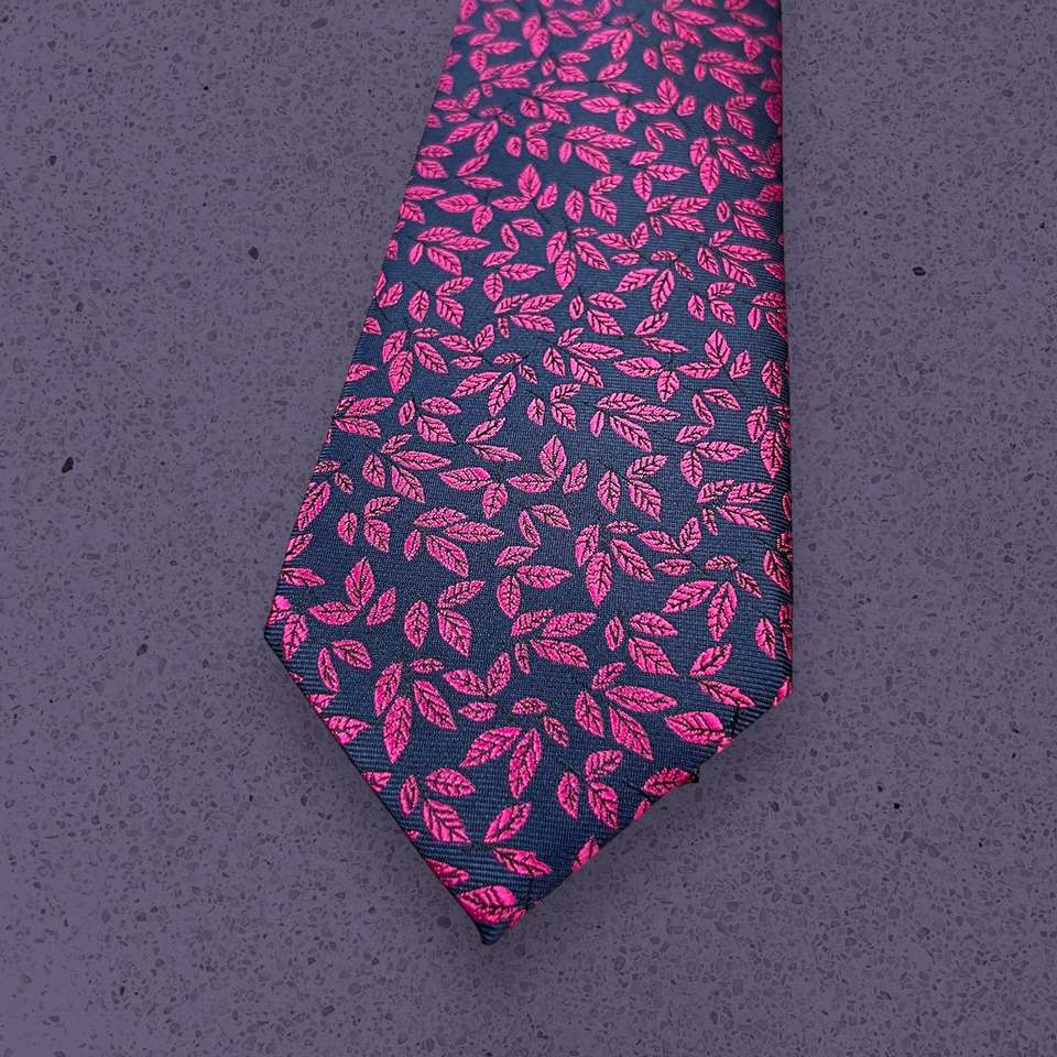 Corbata azul con hojas rosas Corbatas de seda Premium Producto