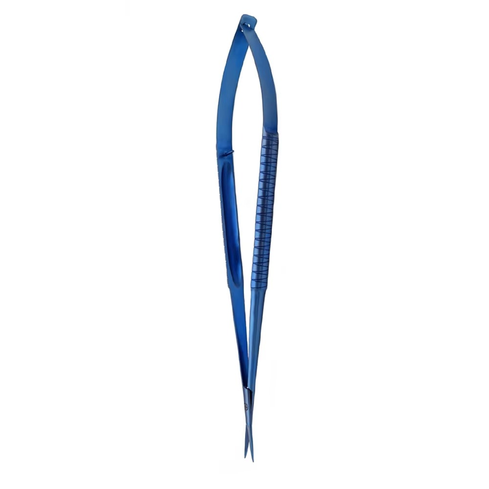 Tijeras Microquirúrgicas de Titanio Azul, Mango de Resorte, Punta Curva, Instrumentos Oftálmicos, Tijeras Oculares de Acero Inoxidable