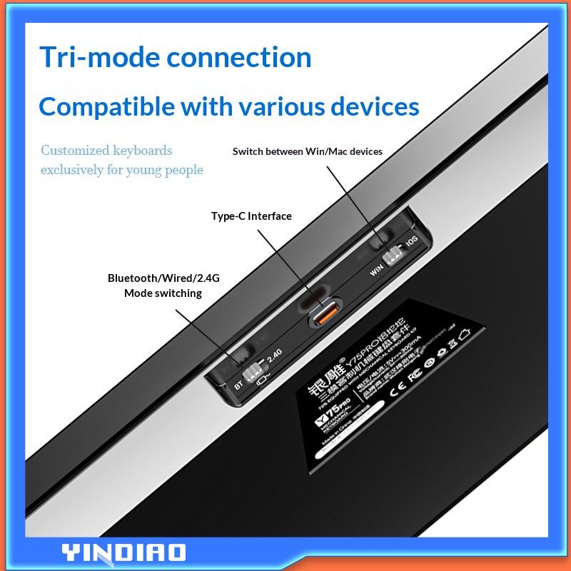 Teclado Mecánico Inalámbrico Bluetooth Tri-Modo con Panel Metálico, Combo con Cable para PC y Videojuegos