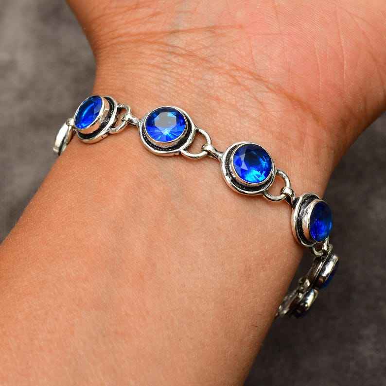 Piedra preciosa de Topacio Azul, Plata de Ley 925, joyería Bohemia hecha a mano para todos los días para mujer, estilo cristiano, regalo perfecto para fiestas