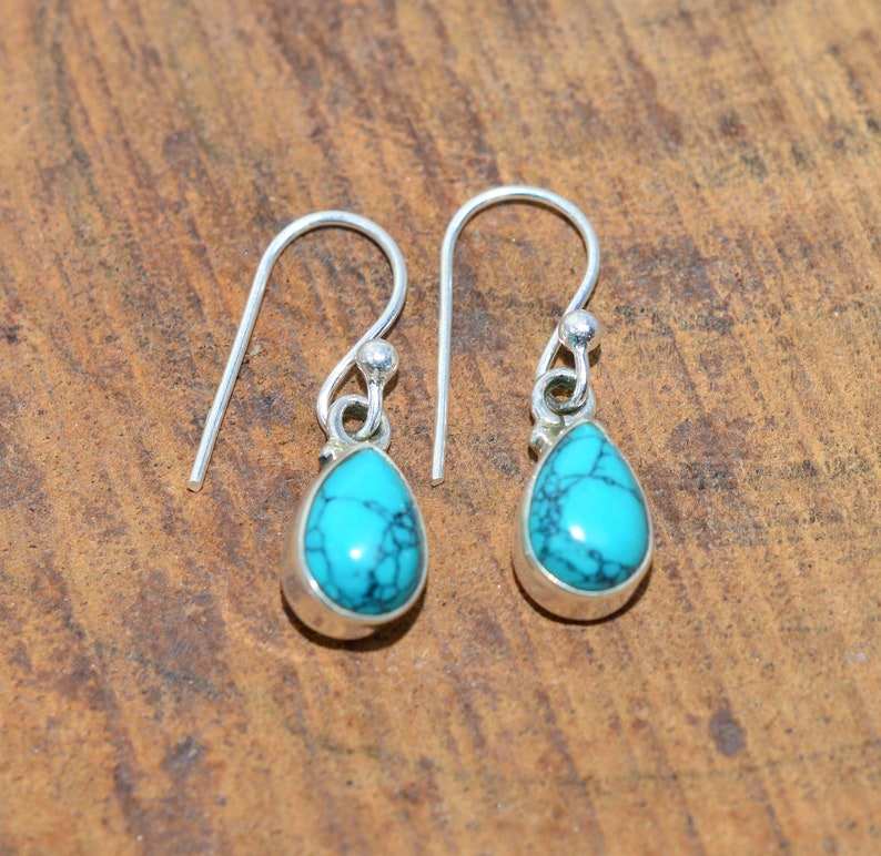 Palabra clave:Pendientes de Turquesa Azul con Brillantes Piedras de Turquesa Azul