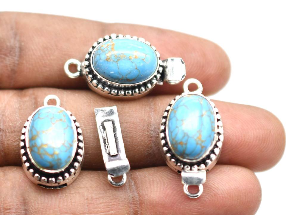 Cierre de caja de piedras preciosas turquesas azules 1-3 hebras 26X15X10MM plata antigua Starling y chapado en oro de 18 quilates para la fabricación de joyas B693