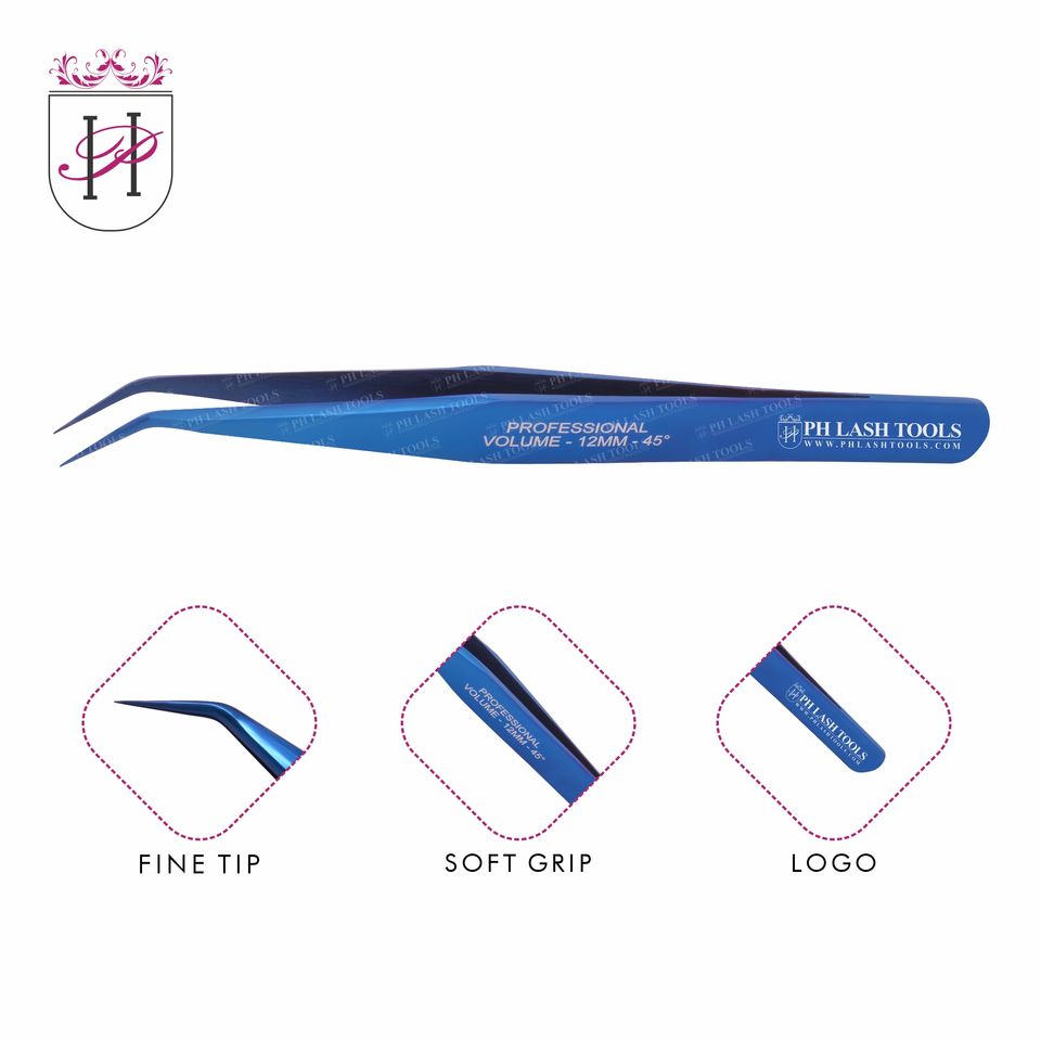 Pinzas azules para pestañas, pinzas de 12mm y 35 grados, en Color azul, Etiqueta Privada, herramientas de extensión de pestañas