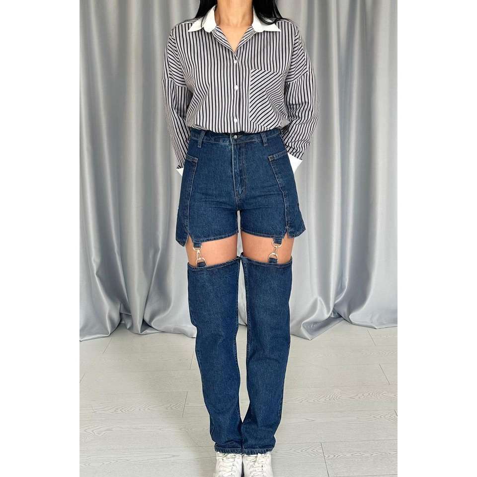 Conjunto de Dos Piezas de Mezclilla Azul con Tirantes y Diseño Recortado, Conjunto de Jeans de Moda para Mujer