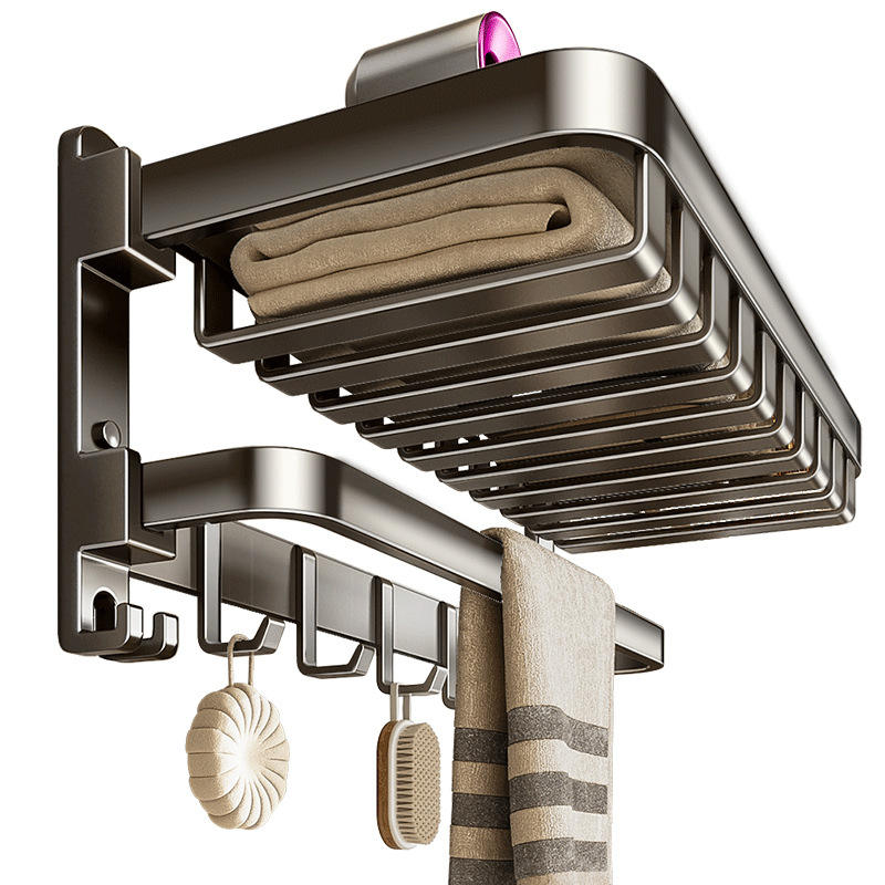 Juego de toallero doble plegable color plomo, 4 piezas, modelo 2.