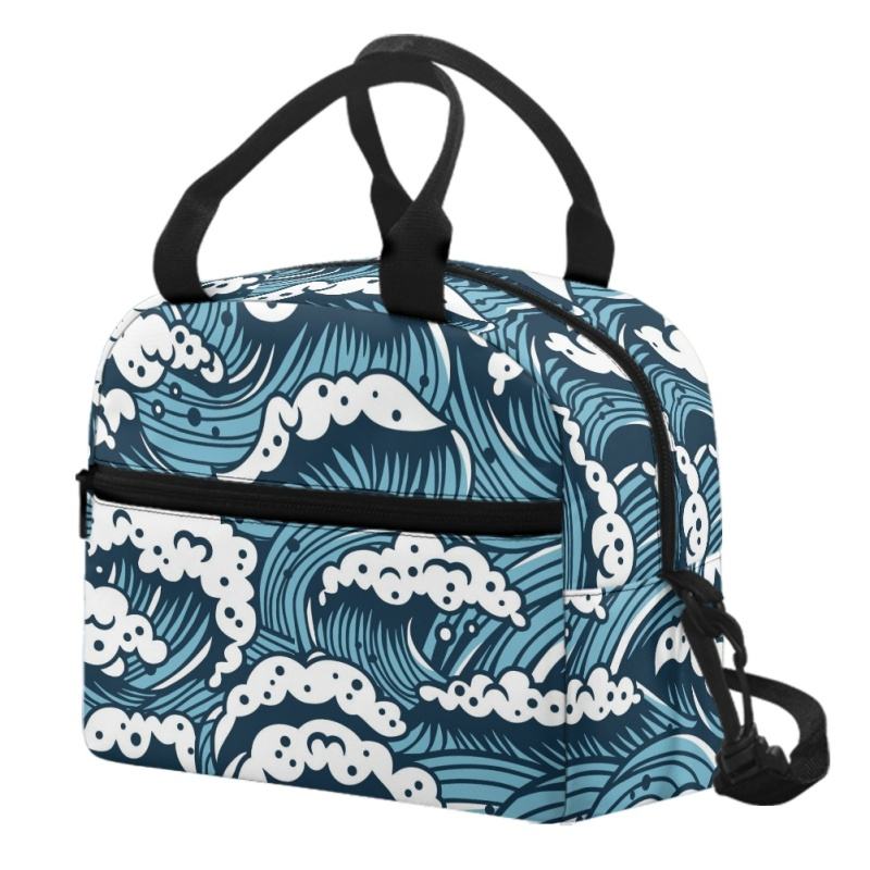 Blue Waves Pattern Kids PU Cremallera Bolsa de picnic Compacto Aislado Bento Lunch Bag
