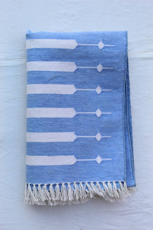 Azul Blanco 4x6 pies de algodón tejido a mano Dhurrie alfombra artesanal indio hecho trenzado técnica geométrica Zig Zag patrón lavable conjunto de alfombras