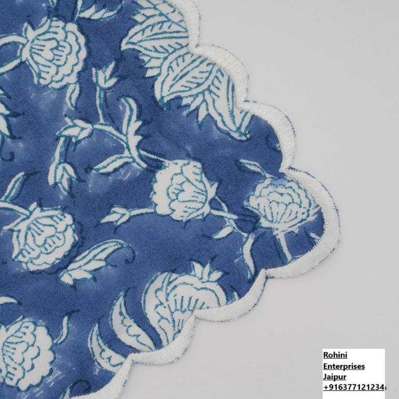 Servilletas personalizables de algodón con estampado de bloques indios hechos a mano florales azules y blancos Bordado de vieiras 18x18 "20x20" Servilletas para todas las estaciones