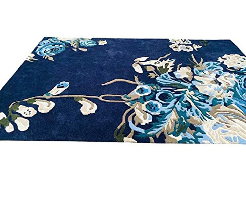 Diseño de rosa de flor blanca azul 100% pila de lana alfombra india con mechones a mano y alfombra estilo moderno para aplicación en el suelo del hogar