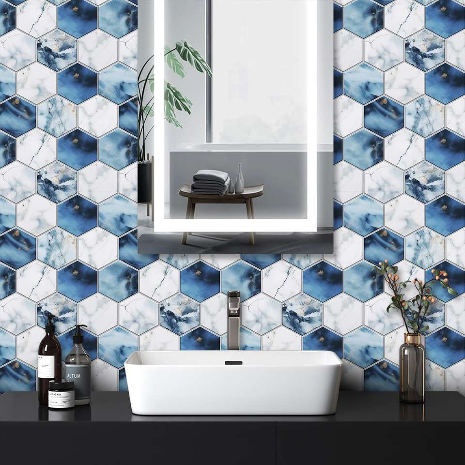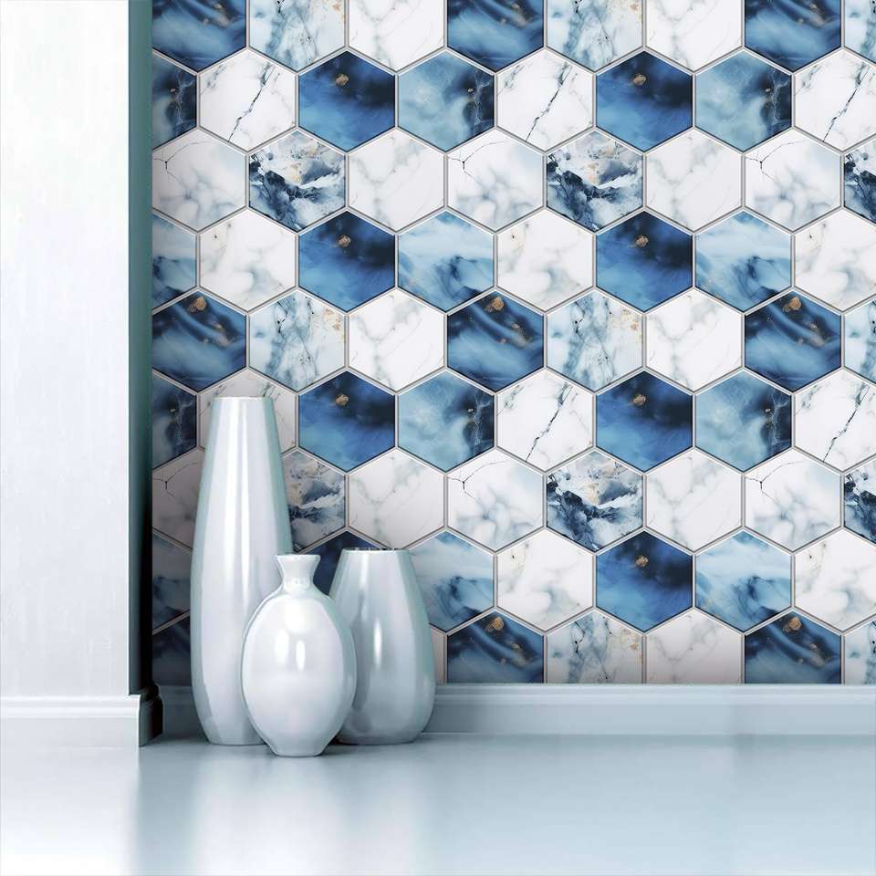 Azulejos de Pared Autoadhesivos de PVC Impermeables con Diseño de Mármol Azul y Blanco, Adhesivos de Pared Transferibles que se Pueden Cortar y Ajustar a Cualquier Superficie