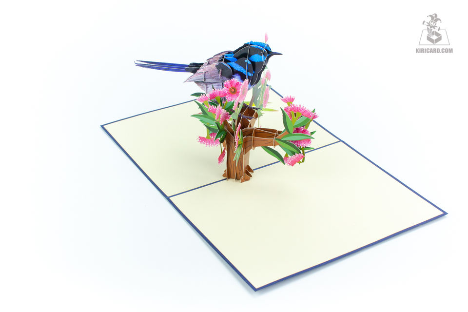 Tarjeta emergente Blue Wrens Tarjeta Kirigami hecha a mano por artesanía de fabricante vietnamita