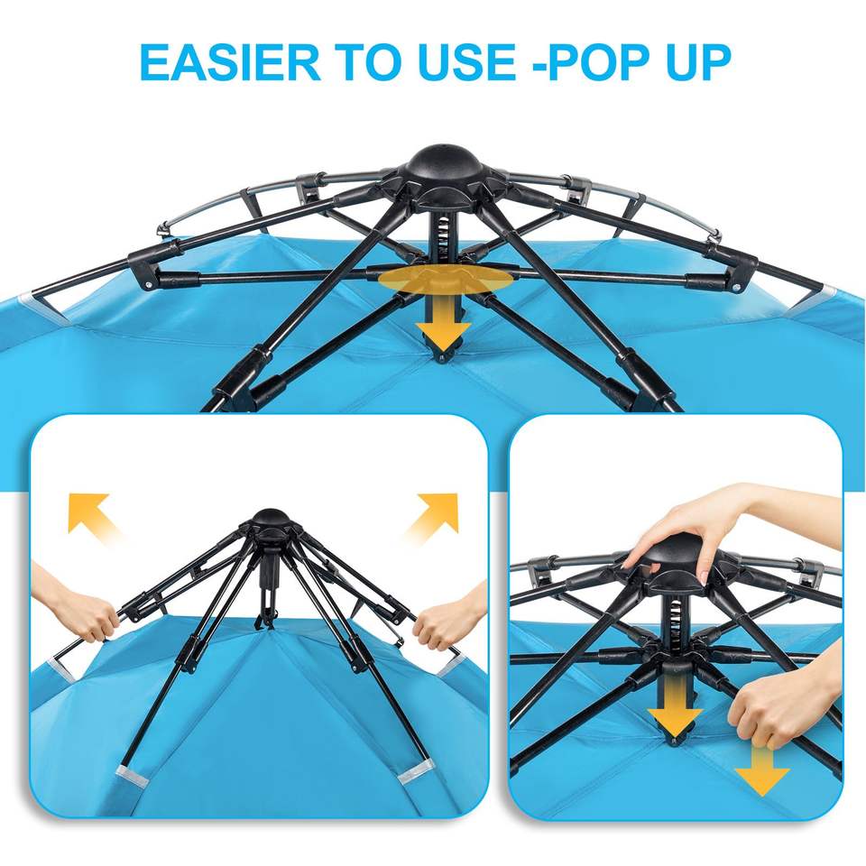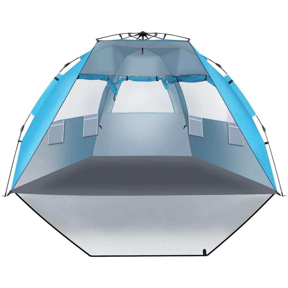 Carpa de Playa Azul YJ de Apertura Rápida, Tela Oxford con Poste de Fibra de Vidrio para Acampar