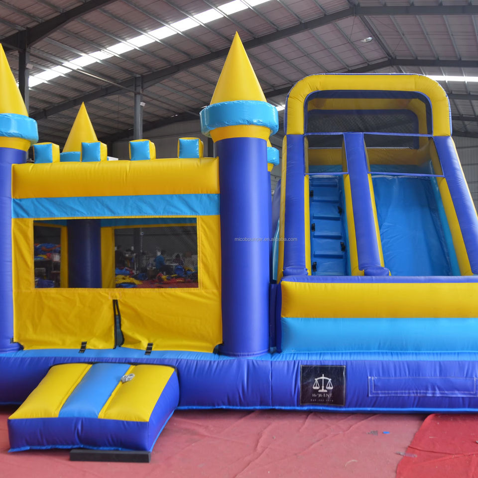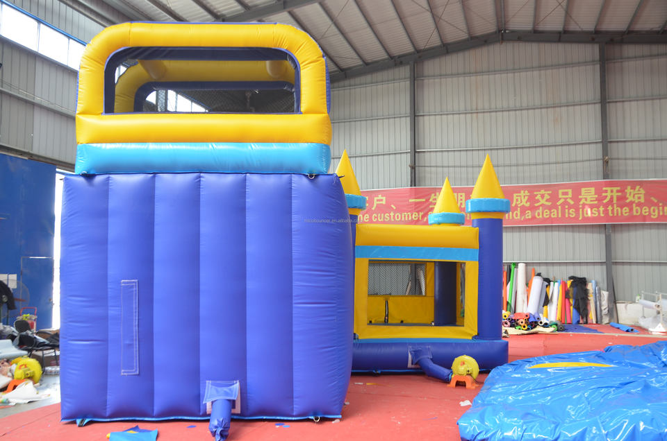 Castillo Inflable Clásico Azul y Amarillo con Tobogán, Doble Torre, Combinación de Brincolín Inflable para Niños, para Alquiler Comercial en Fiestas