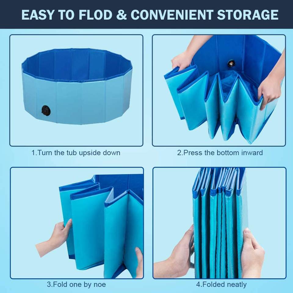 Piscina plegable de pvc para perros y gatos, lavable, grande, 80x20cm, color azul y rojo