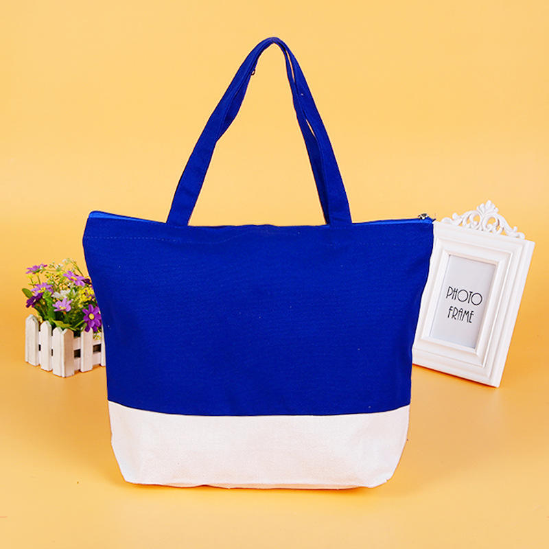 Bolso de lona azul y blanco Bolso de compras con diseño de cremallera simple