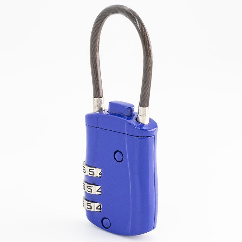 Candado de equipaje de tres pasos, candado con cable de acero, color azul