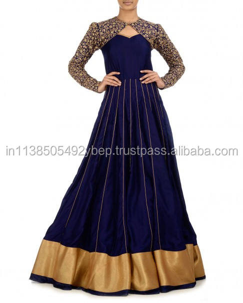Últimos diseños de Anarkali azules en georgette y seda cruda, ropa india y pakistaní para mujeres adultas.