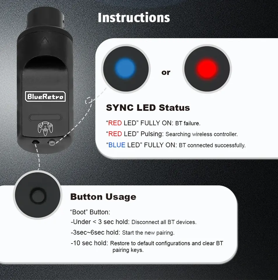 Adaptador Inalámbrico BlueRetro para Consola N64 a Controles de Juego PS3 PS4 PS5 8bitdo Ultimate, Dongle para Gamepad de Nintendo 64