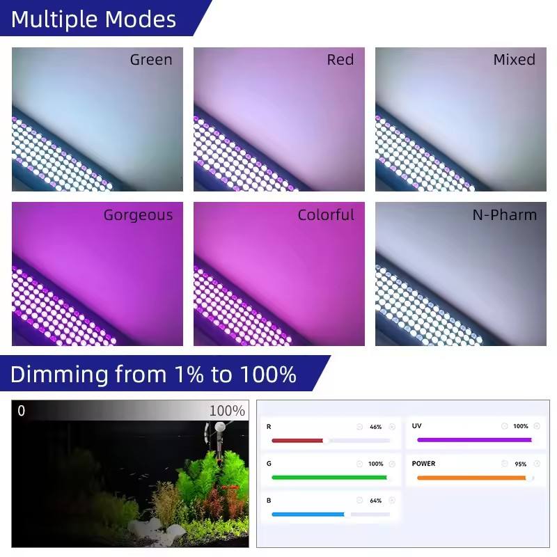 Lámpara LED RGB UV para Acuarios Plantados de Agua Dulce, Controlada por Aplicación Bluetooth, con Temporizador, Diseño Colgante Blanco Frío